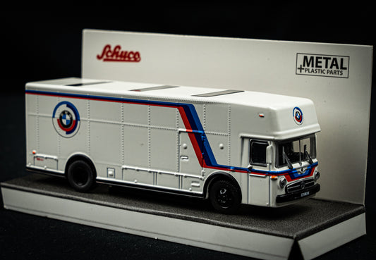 Mercedes-Benz O-319 Renntransporter BMW Motorsport weiß 1:87 Schuco