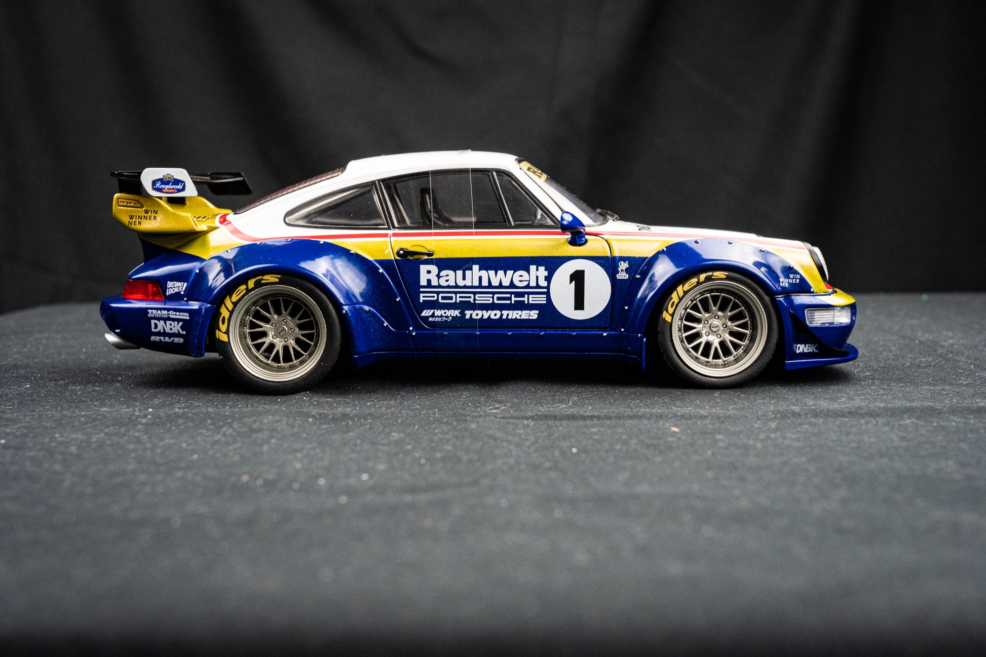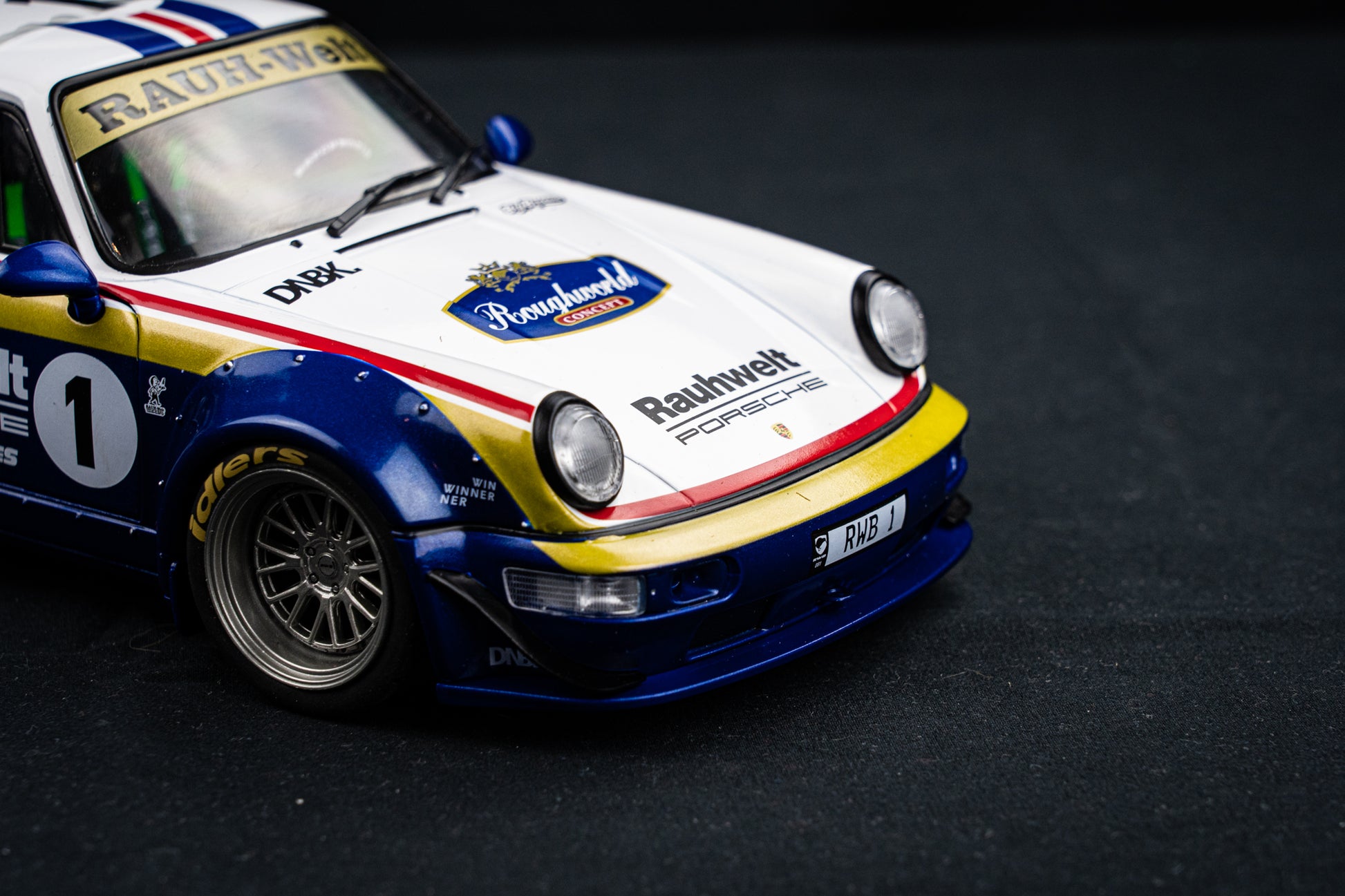 Porsche 911 (964) RWB Rauh - Welt 2022 blue / white / red / gold - Solido 1:18